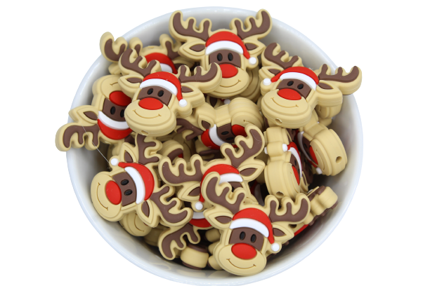 Perle en silicone en forme de renne avec bonnet